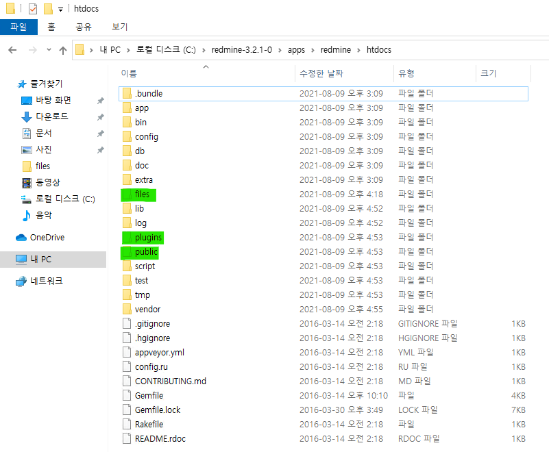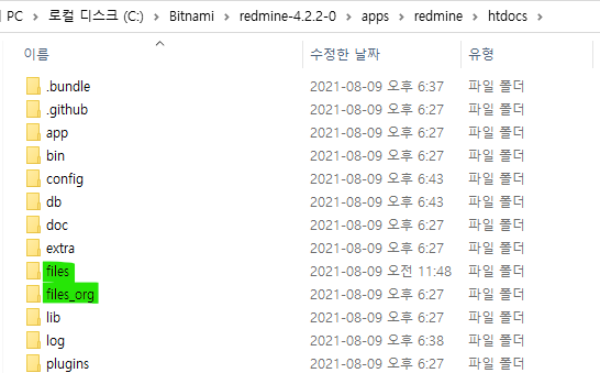 저는 혹시나 몰라서 'redmine-3.2.1-0' 폴더 자체를 복사 해두었습니다 😁😁