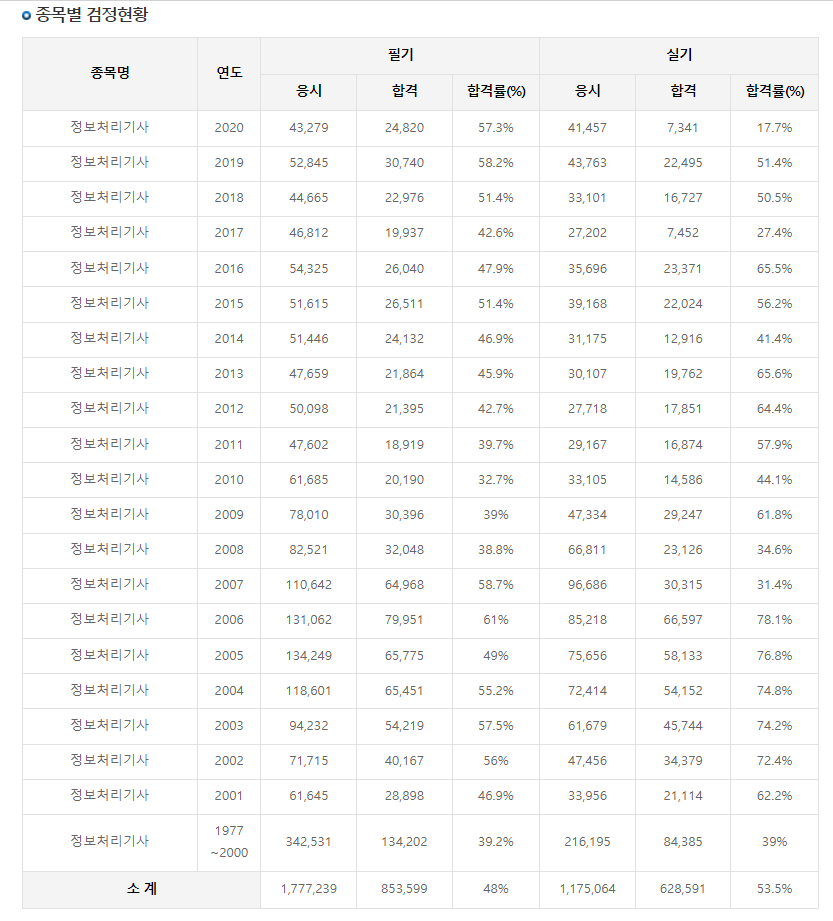 정보처리기사 합격률