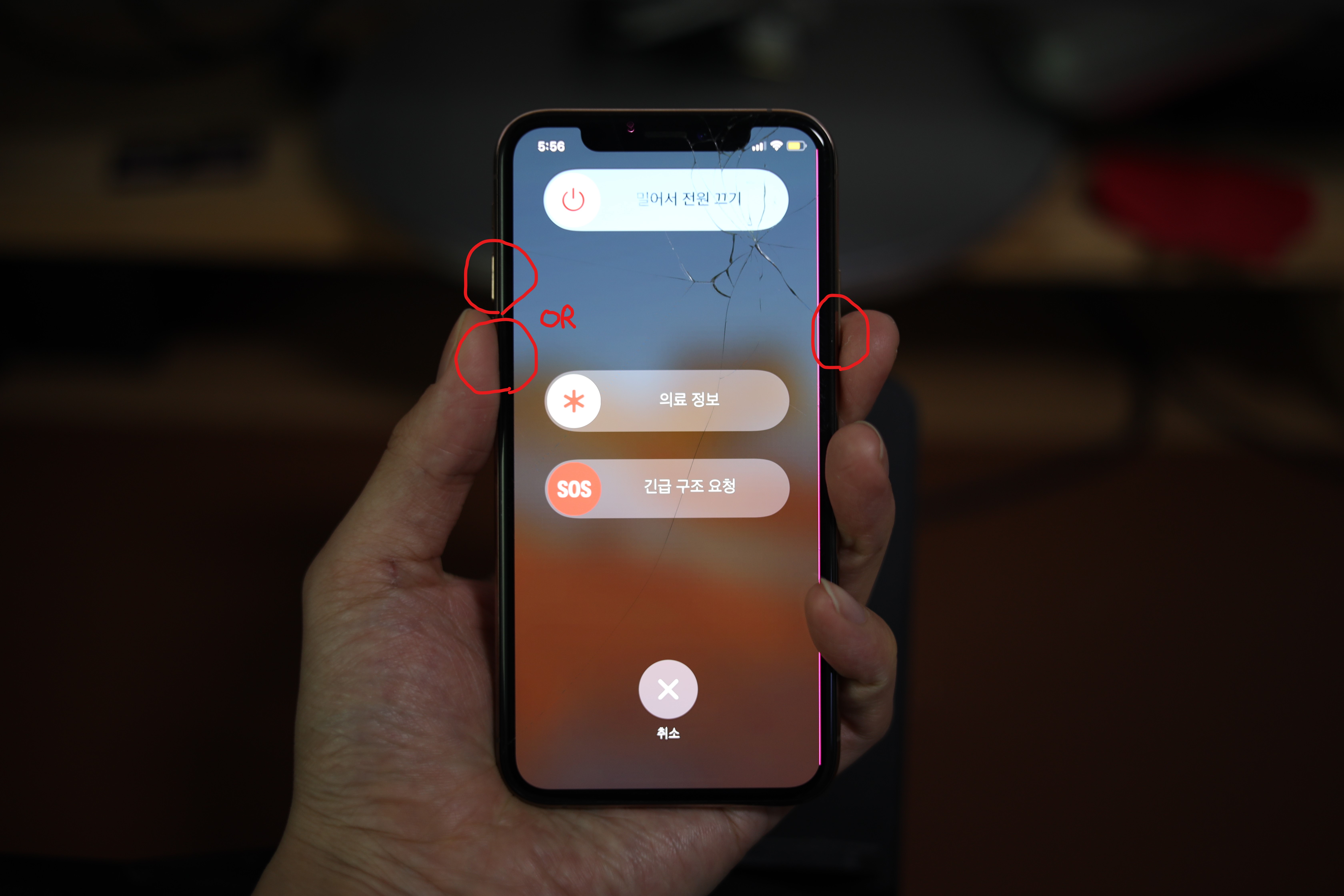 아이폰의 '볼륨버튼 한개 + 우측 전원버튼' 두개를 길게 눌러주게되면 긴급서비스 센터로 자동으로 연결을 해주게 됩니다.