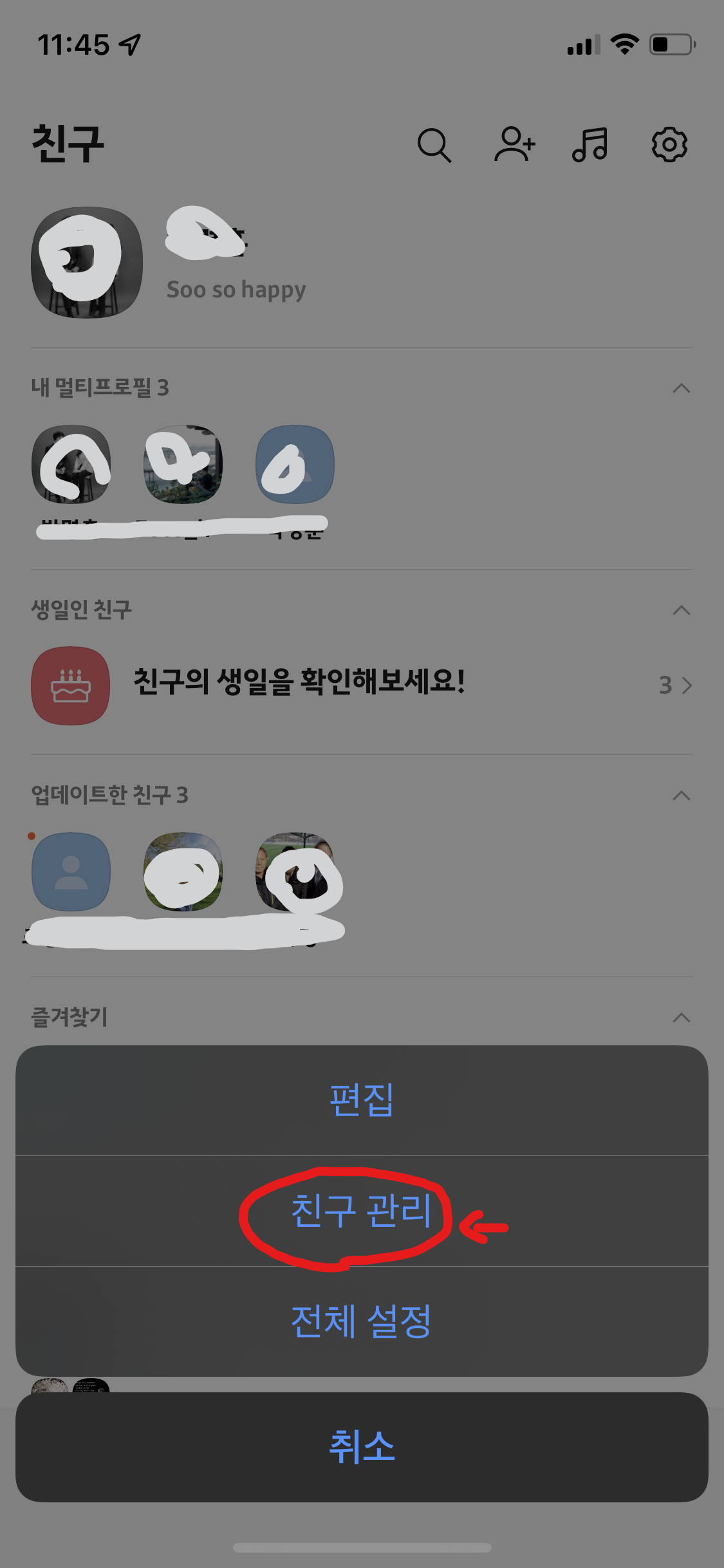 생일인 친구를 보고싶지 않다면 왼쪽사진과 같이 설정을 해주시면되고,