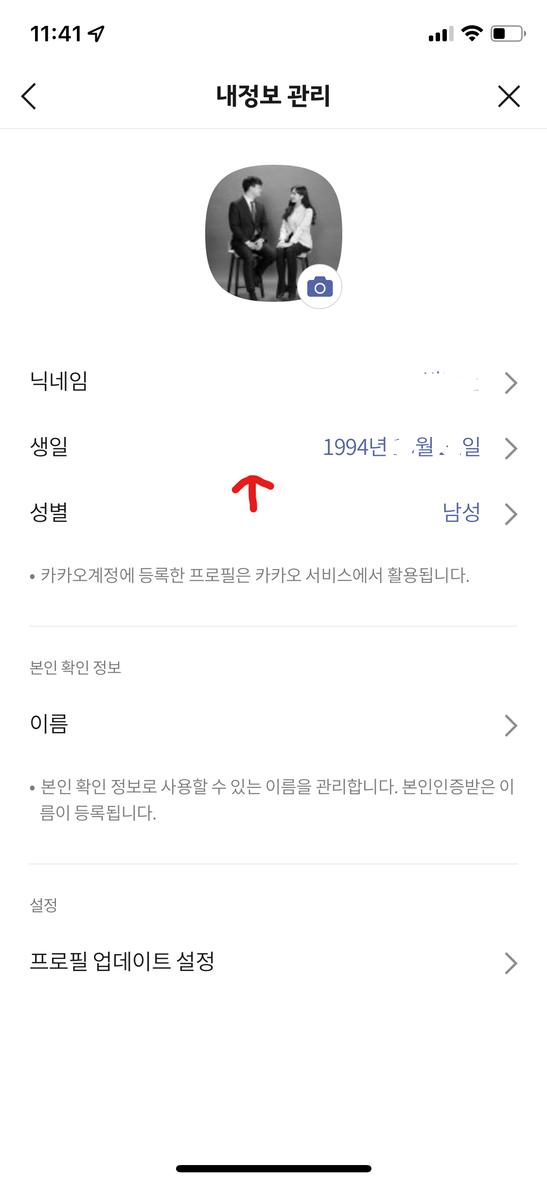 나의 생일이 설정이 잘못되어있을때, 수정하는 방법입니다.