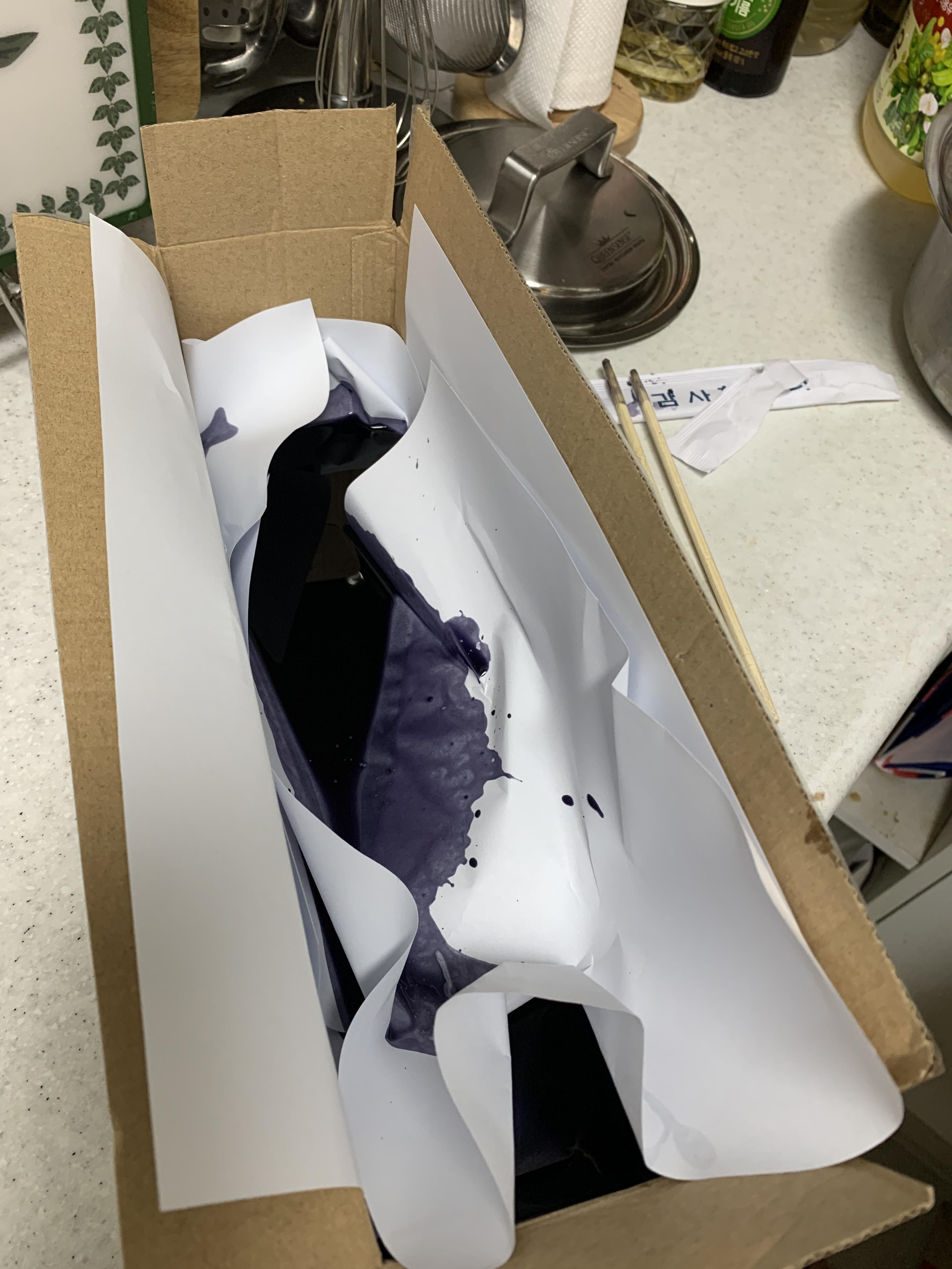 또다른 방법으로는 신문을 넓게 깔아서 부어주는 방식도 있습니다. 이번에 저는 박스를 통해서 버리는 방식으로 한번 해보도록 하겠습니다.