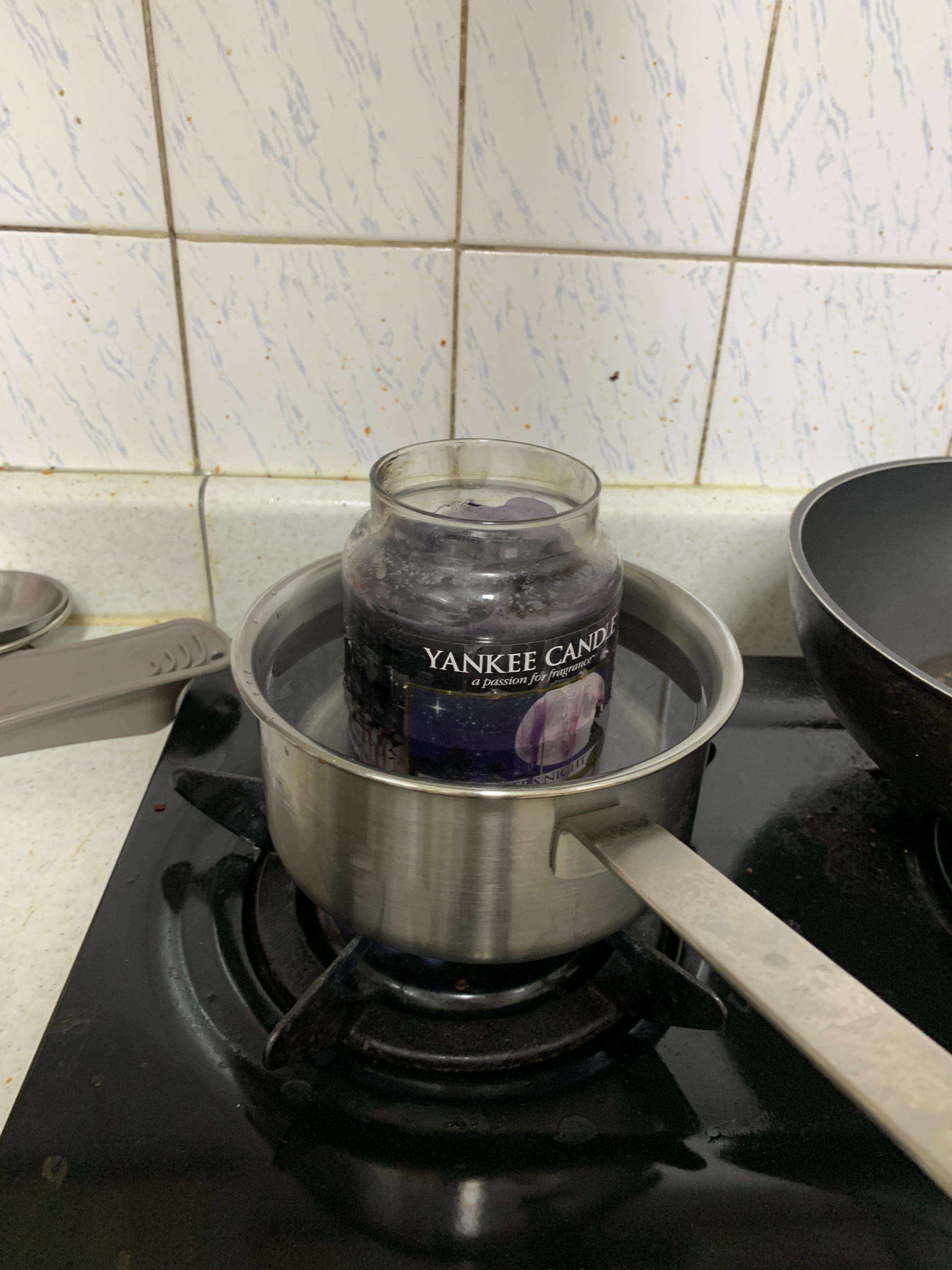 *중탕된 양키캔들의 병과 양초는 정말 뜨겁고 미끄러우니 도구를 잘 선택하여 진행하시기 바랍니다.