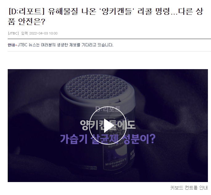 지난 17년간 유해물질이 검출되어 공식 피해자만 6800명이 나온 '가습기 살균제 사건'을 기억하실겁니다. 그때 당시 발견된 물질인 'CMIT'성분이 이번에 양키캔들에서 발견이 된 것입니다.