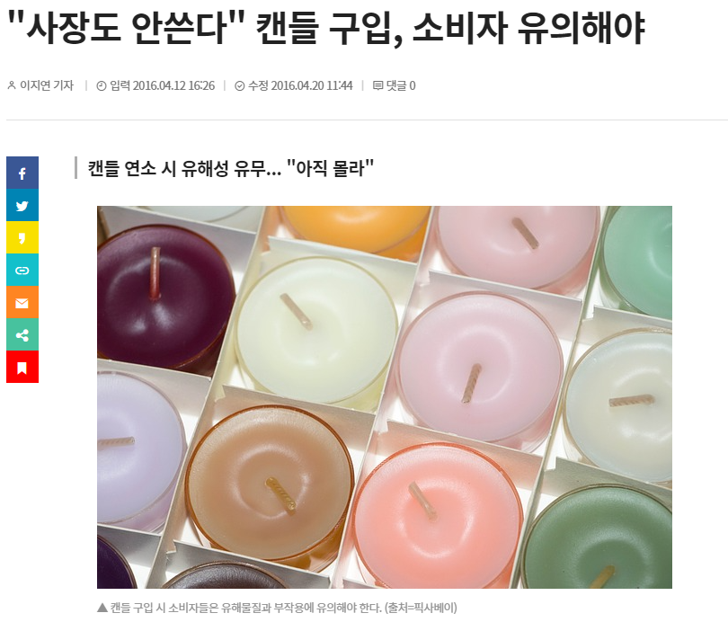 그래서 오늘은 양키캔들의 유해물질 이슈에 대하여