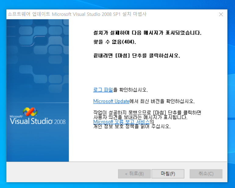 Visual Studio 2008 SP1 설치 실패시 해결 방법