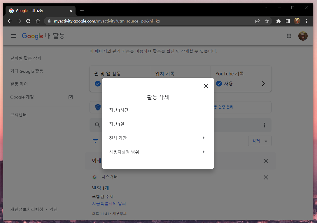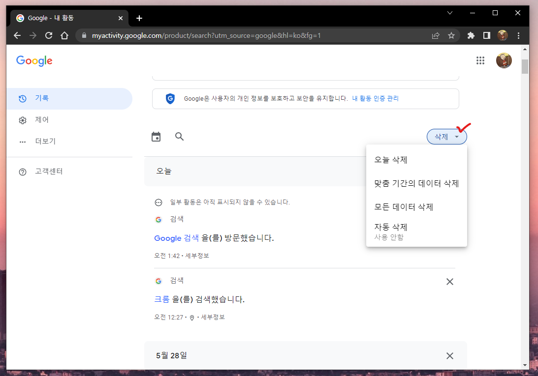구글계정 검색기록 삭제