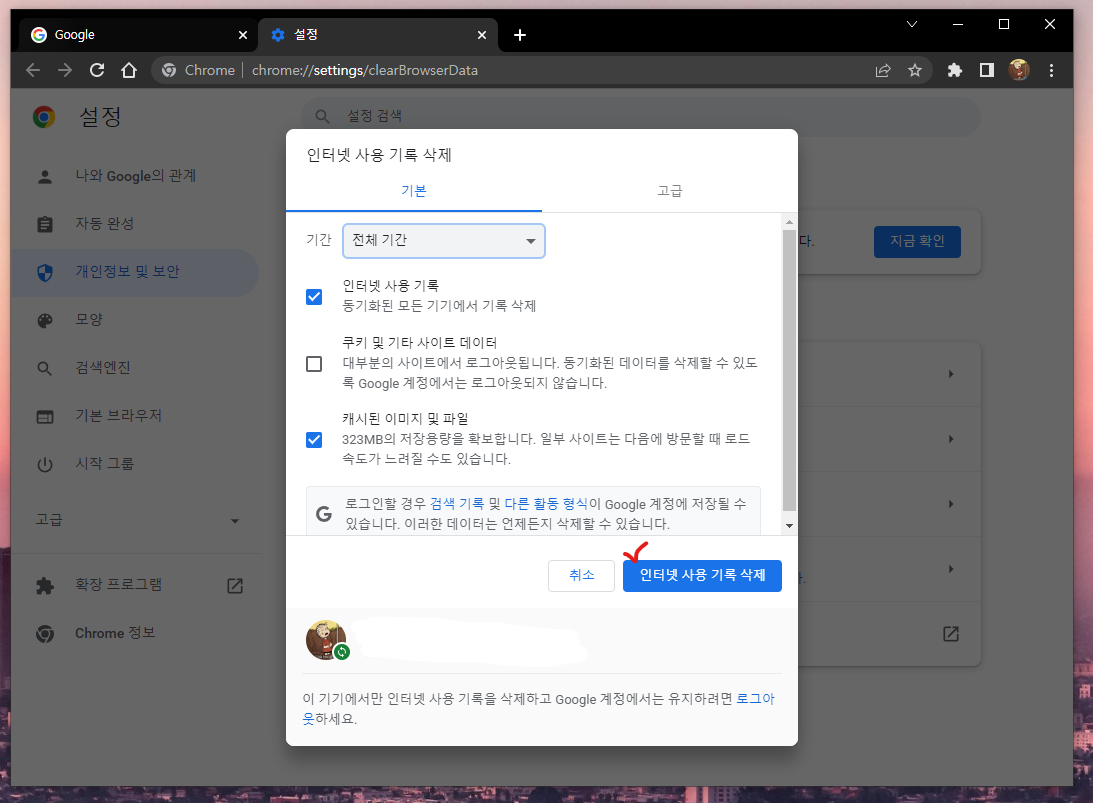 크롬 브라우저 검색기록삭제