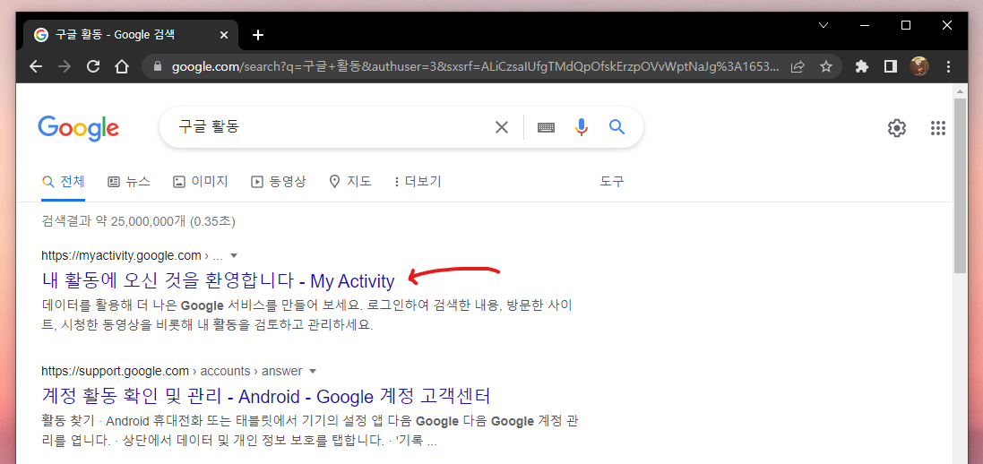 구글 검색창에 '구글 활동' 검색해줍니다. 그리고 제일 상단에 있는 'My Activity' 클릭해줍니다.