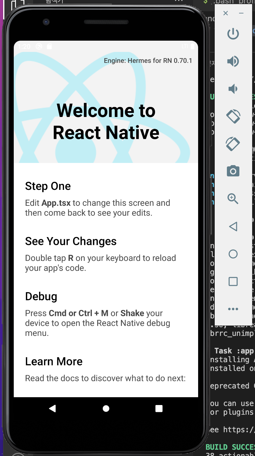 이제 리액트네이티브 프로젝트를 생성하여 실제로 앱을 구동해보겠습니다.