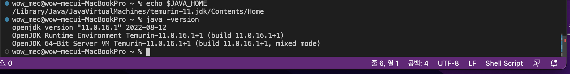 자바JDK11 설치가 완료되었다면 $HOME/.bash_profile 에 아래 자바 환경변수를 입력해줍니다.