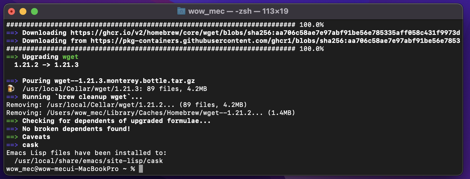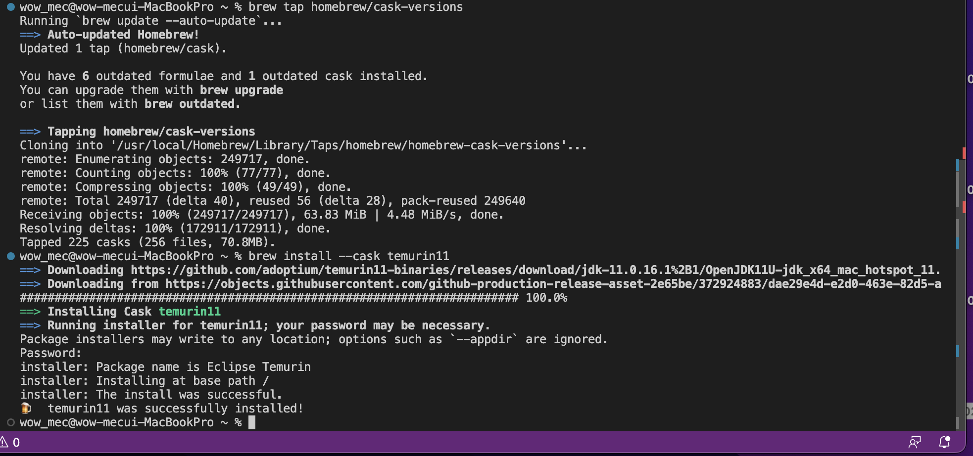홈브루만을 설치해서는 GUI기반 어플리케이션(크롬, 웨일 등)들은 설치할 수가 없기 때문에 홈브루의 단짝인 cask도 아래 명령으로 설치해줍니다.