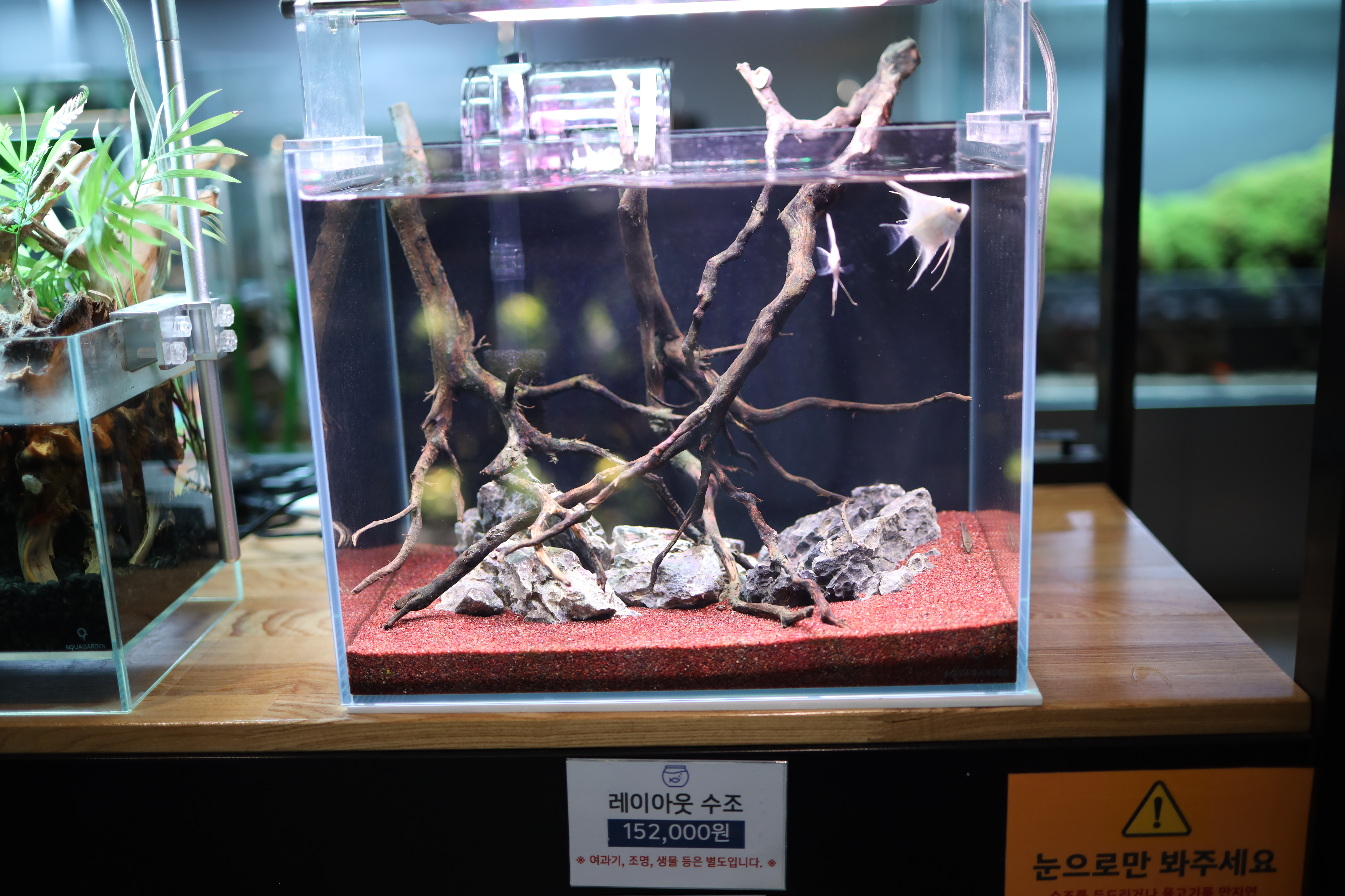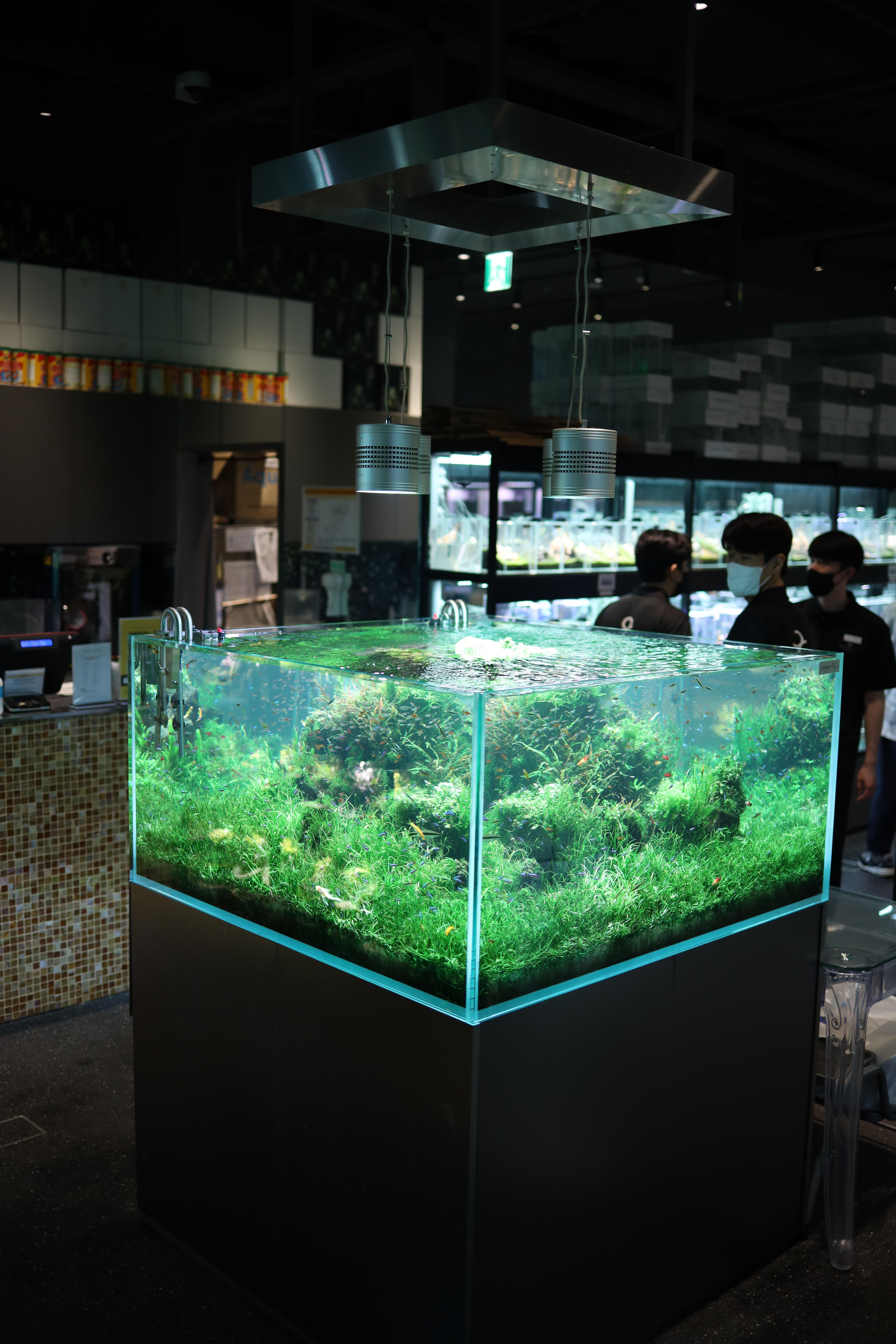 레이아웃이 된 수조들도 많이 판매를 하고 있었는데요. 아쿠아가든 브랜드의 제품이 고가들이 많다보니 금액대가 조금 있었던 것 같습니다. 하지만 물고기를 잘 모르시는 분들이라면, 이런 세트어항 구매하셔서 키워보시는 것도 나쁘지 않을 것 같네요. (여과기, 조명, 생물은 별로라네요 😅)