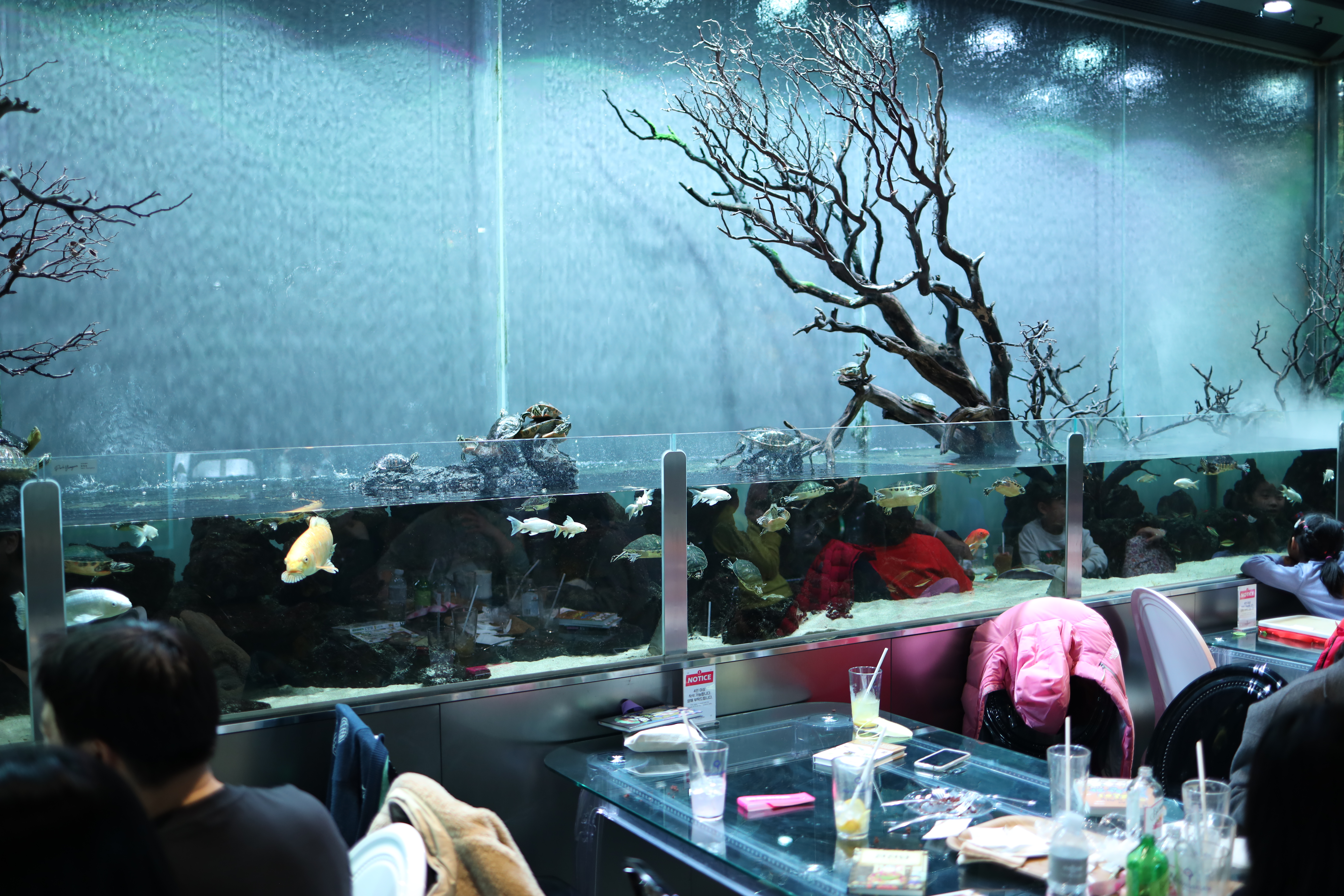 손님들이 어항을 보면서 조금 더 재미를 느낄 수 있도록 벽면에 부착하는 사료(아마 노보탭?)을 붙여서 물고기들이 밥먹는 모습을 바로 앞에서 구경할 수도 있었습니다. 먹이먹는 모습을 구경하는것도 정말 재밌습니다 😁