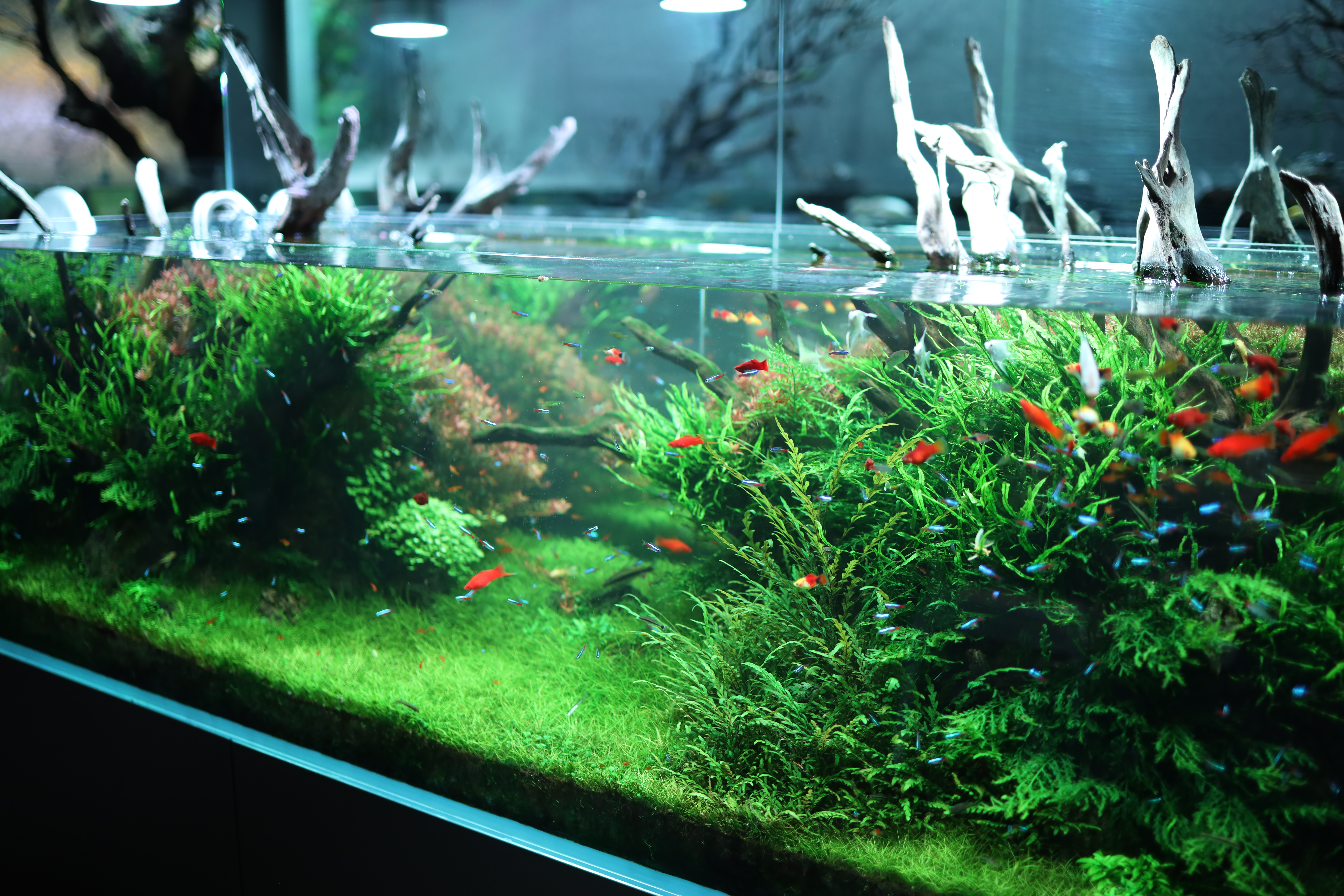 관리하기 좋은 음성수초로 세팅된 어항이 주로 많이 보였었는데요. 개인적으로 음성수초로 레이아웃한 어항을 좋아하는 편이라서 황홀했습니다 ㅎㅎ