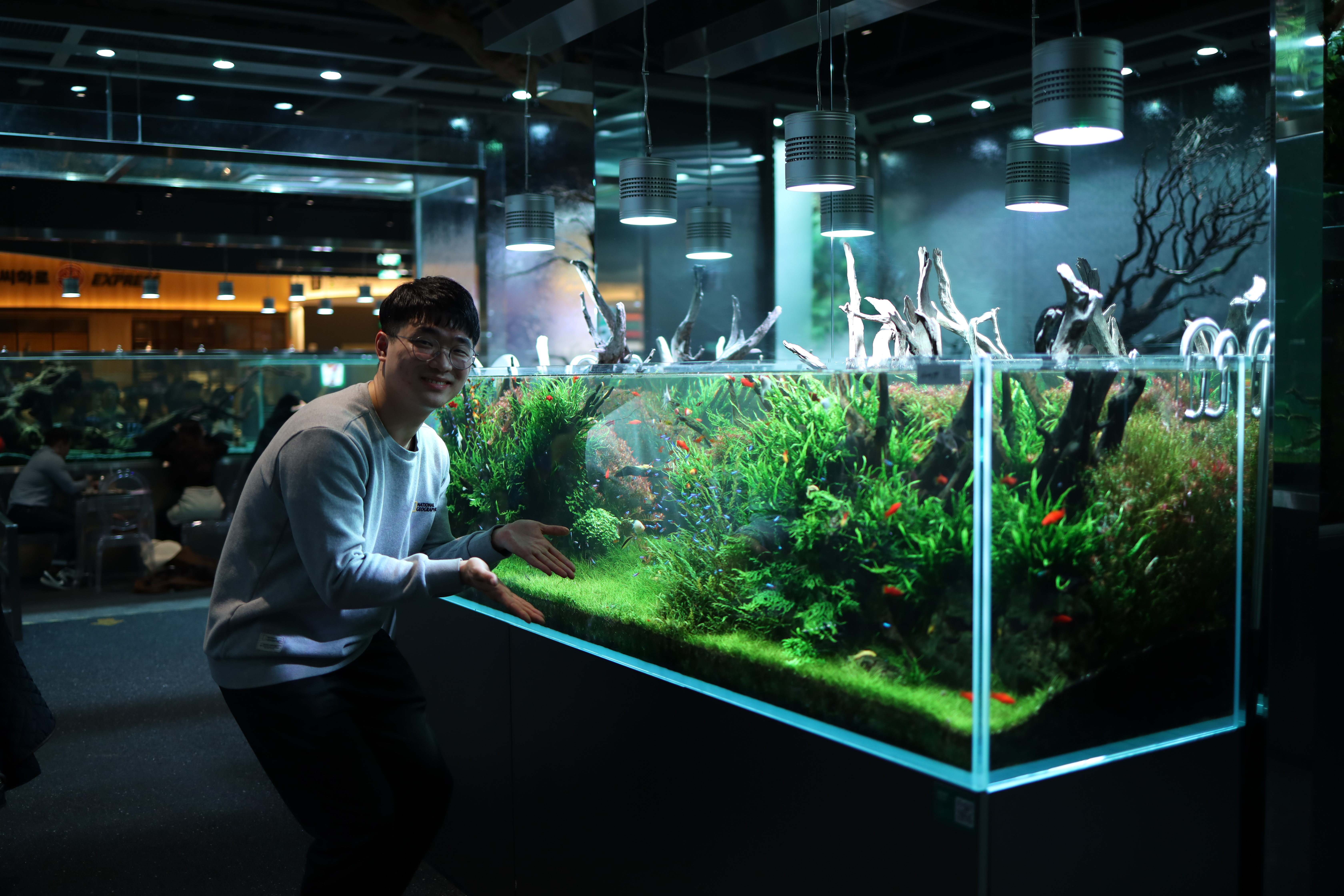 물고기를 키워보신 분들은 아시겠지만, 이렇게 수초가 많은 어항에 물이 이렇게 쨍하게 관리를 해주면서 이끼도 안보이게 관리를 한다는것은 정말 대단한 일입니다.. 아마 매장을 관리하시는 매니저분들은 손님이 없는 밤마다 어항들을 관리하는 작업들을 하고 계시겠죠?😅