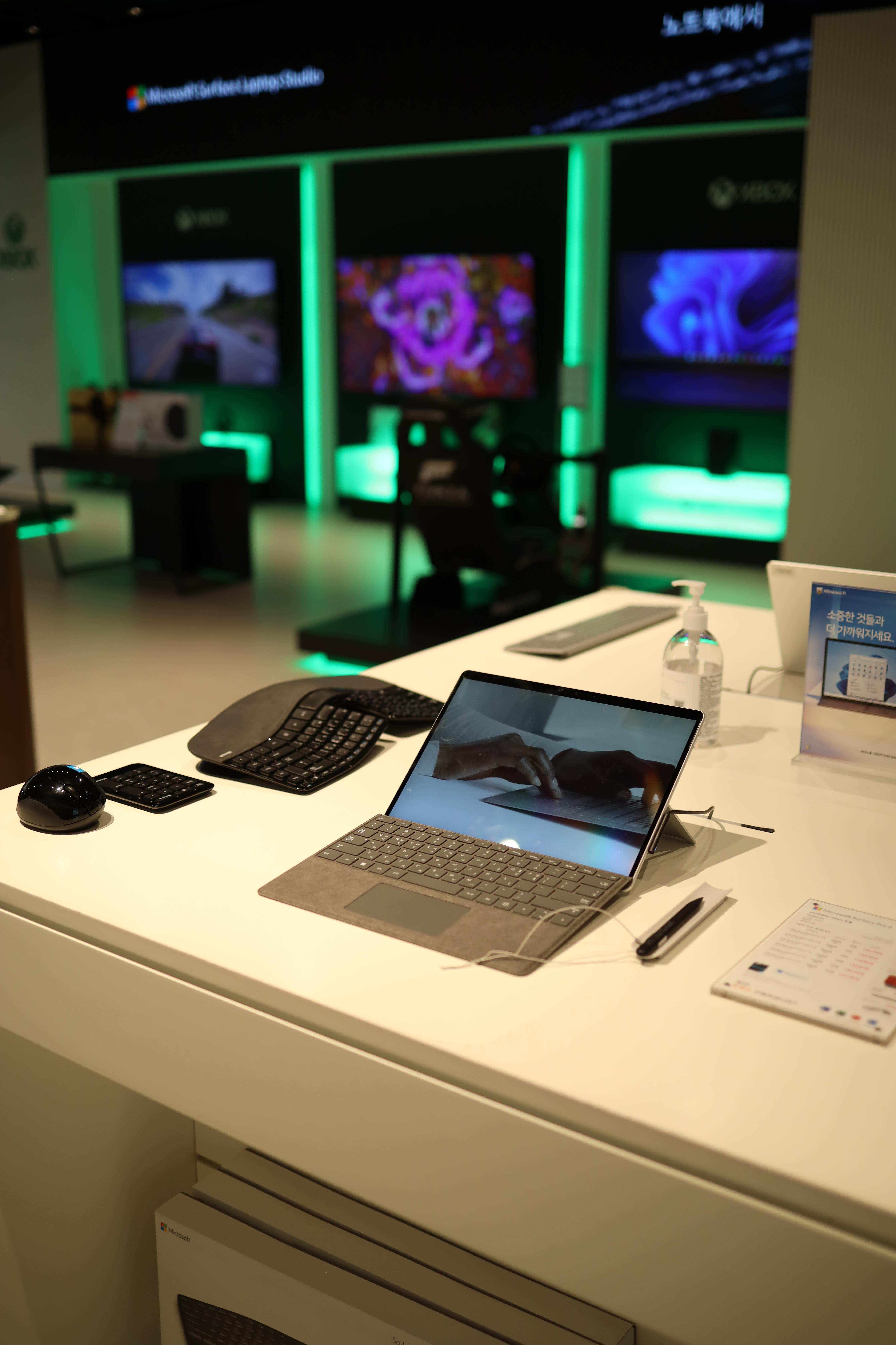 마이크로소프트 제품은 대부분 유명한것이 서피스와 XBOX 인데요. 더현대 서울 마이크로소프트 매장에도 노트북라인과 서피스라인들과 XBOX관련 제품들이 전시가 되어있었습니다.
