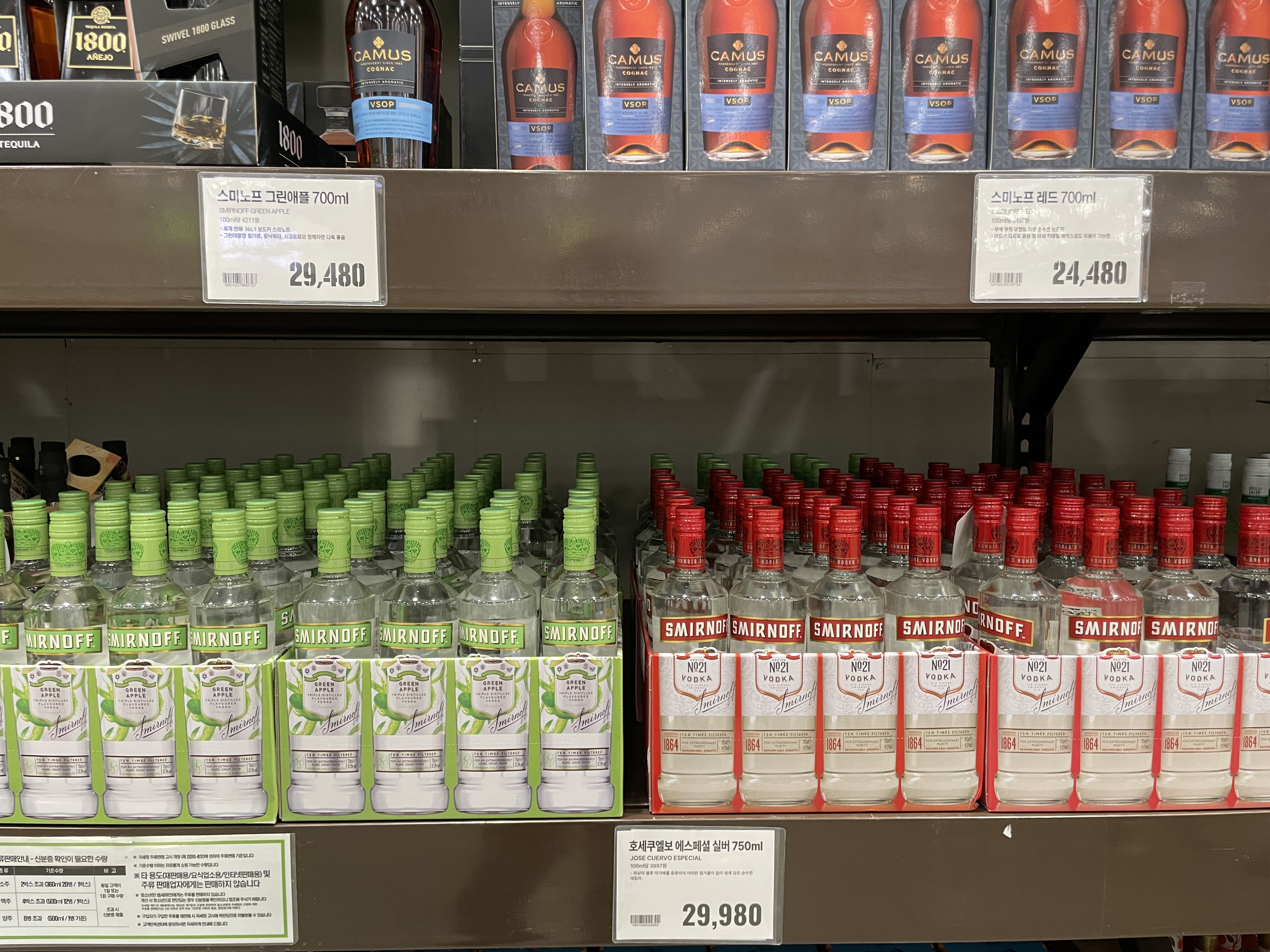 보드카하면 앱솔루트하고 쌍벽을 이루는 스미노프 레드 700ml도 있습니다. 다른 매장에 비해서 가격은 정말 저렴한편이라서 스미노프 레드는 항상 여기서 구매합니다😁