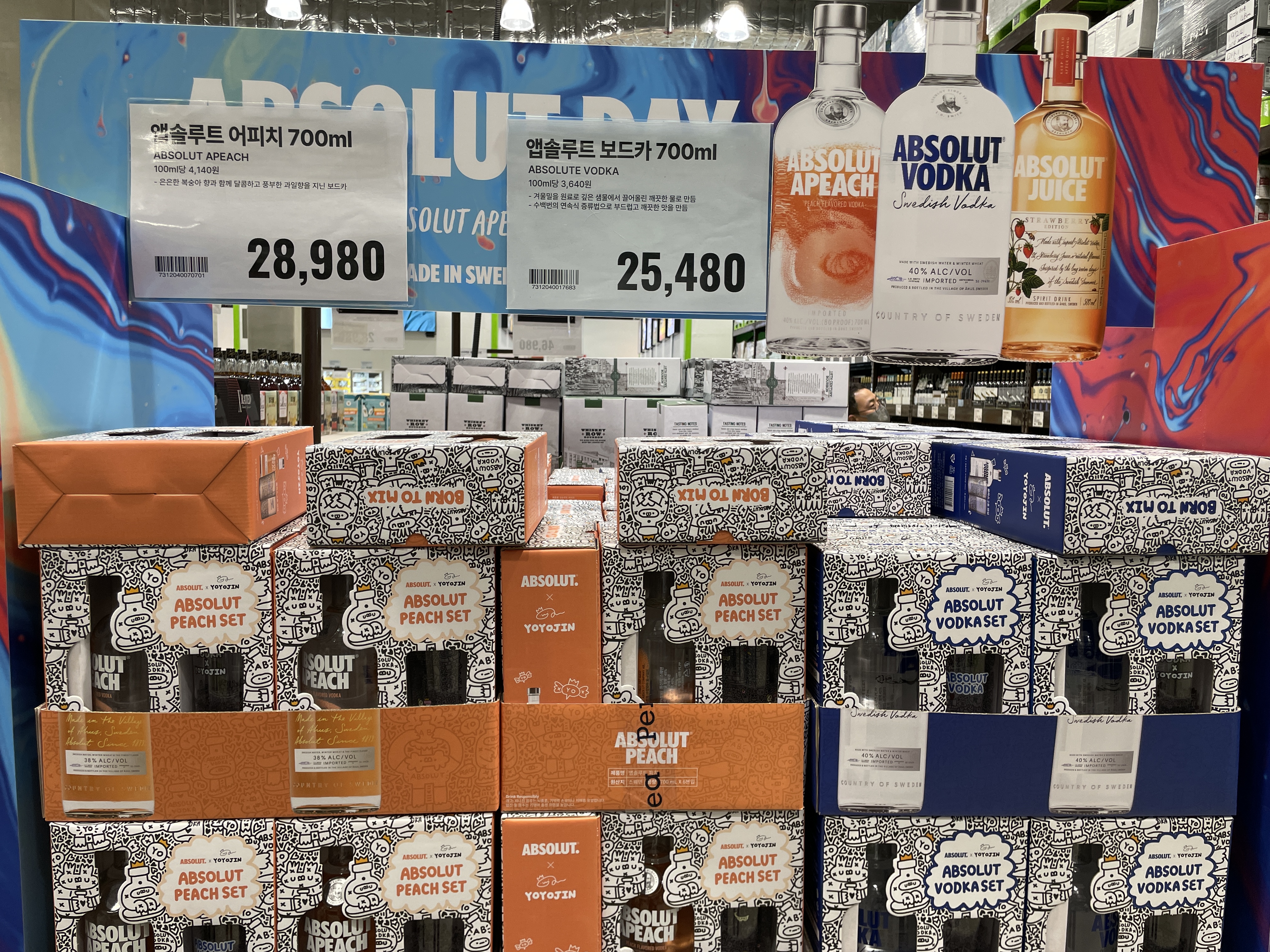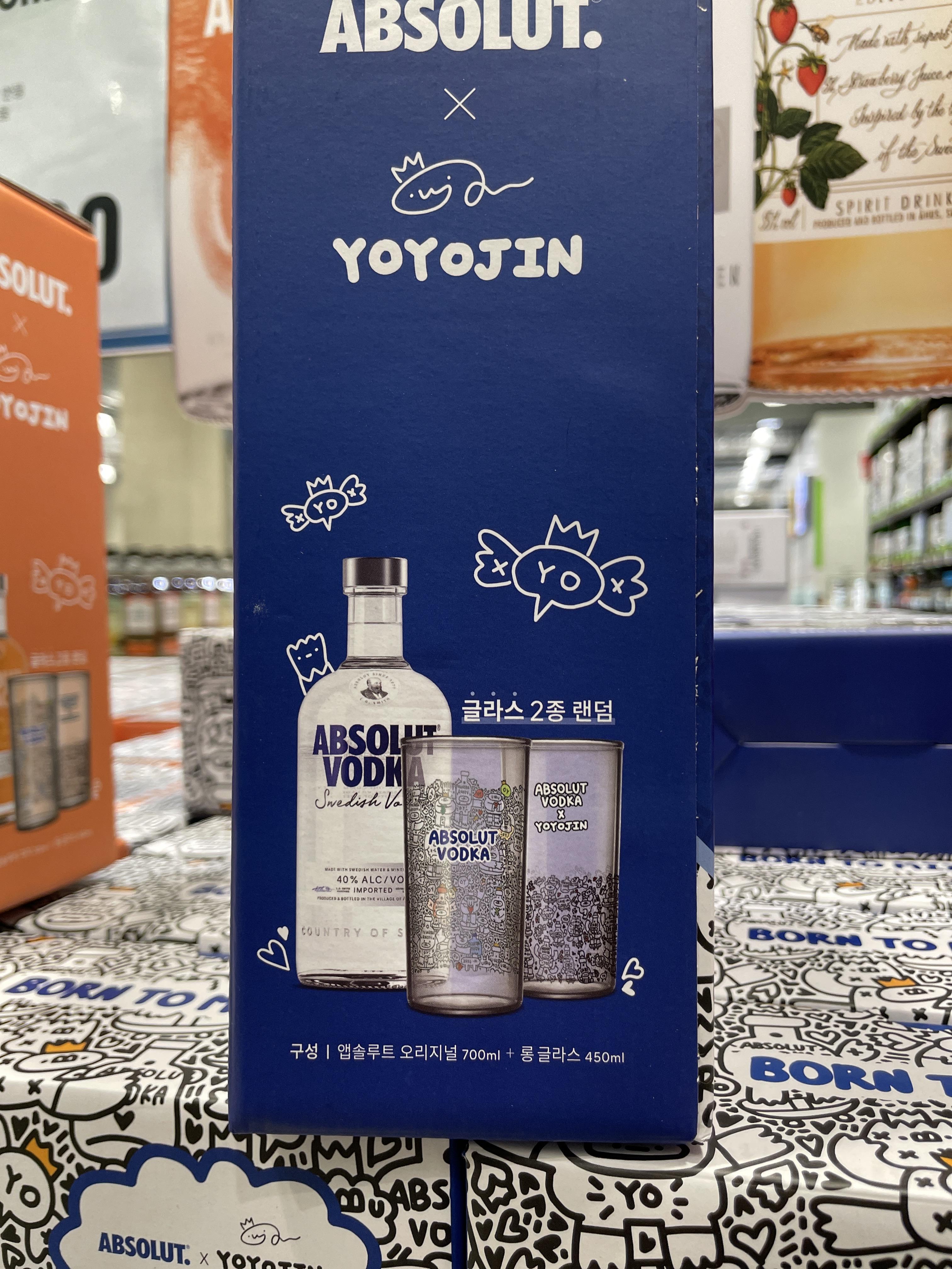 트레이더스에 오면 자주 구매하는 앱솔루트 보드카 700ml. 이번에 요요진x앱솔루트 패키지 세트가 나오면서 컵을 하나 증정하는 행사를 하고 있었습니다.