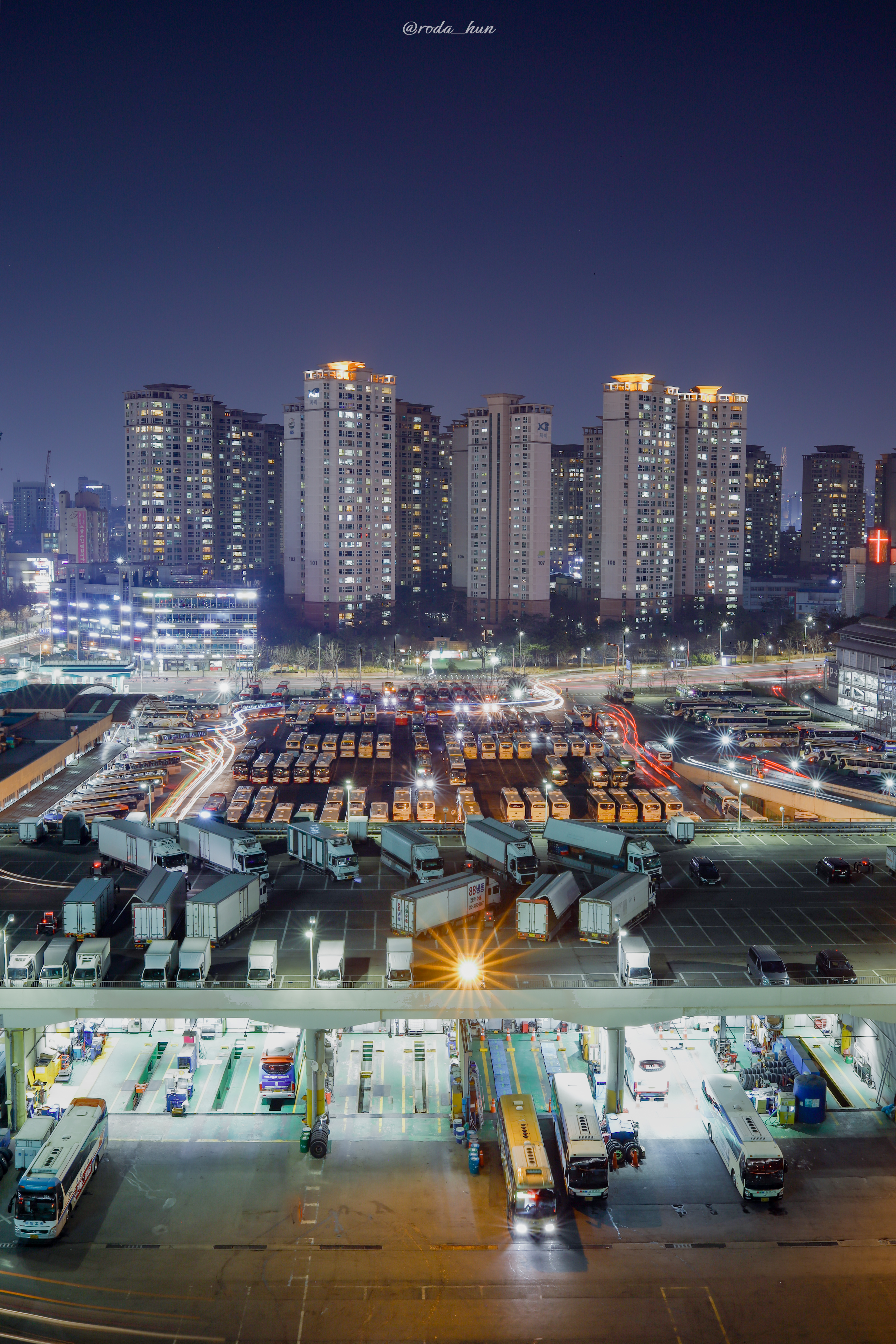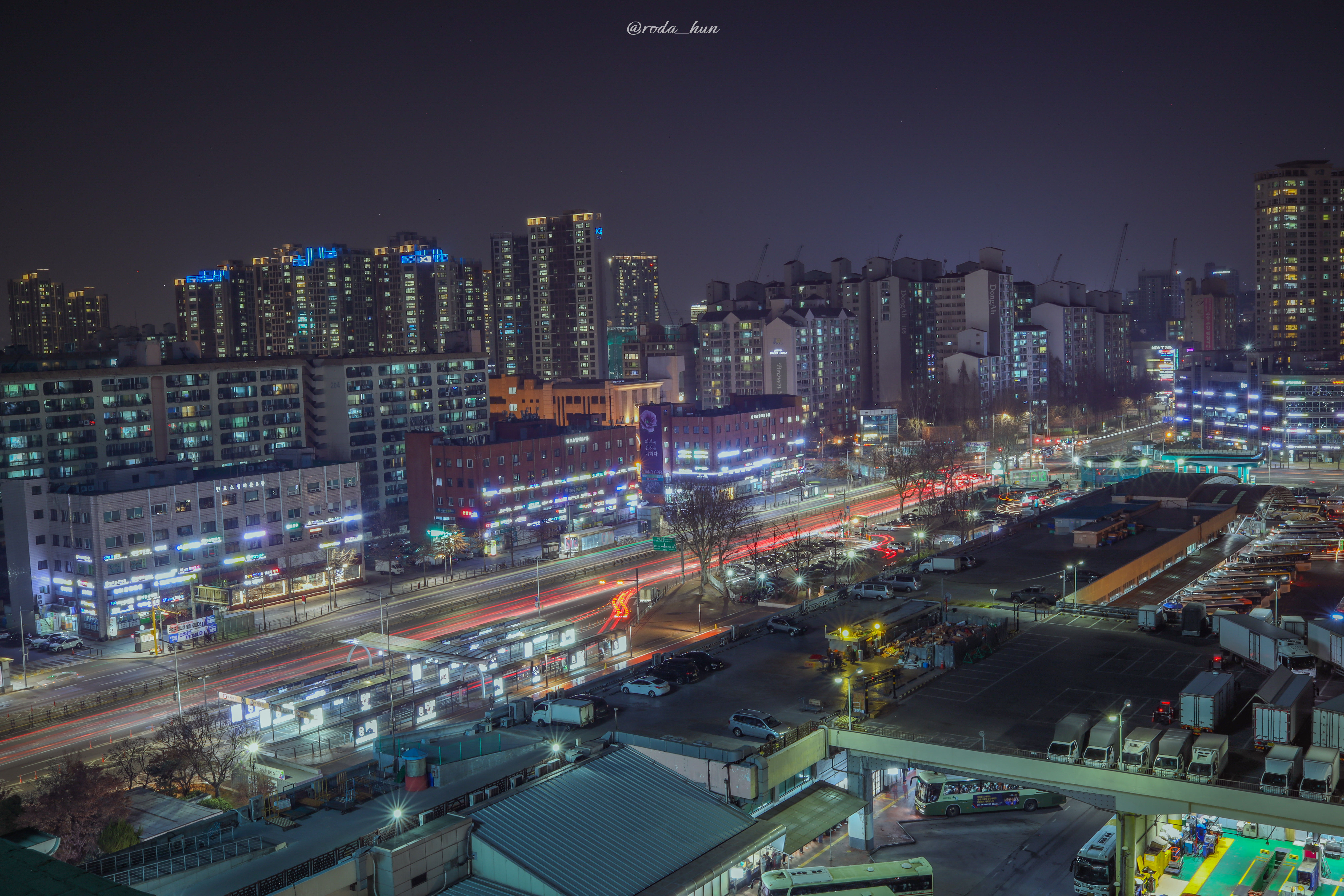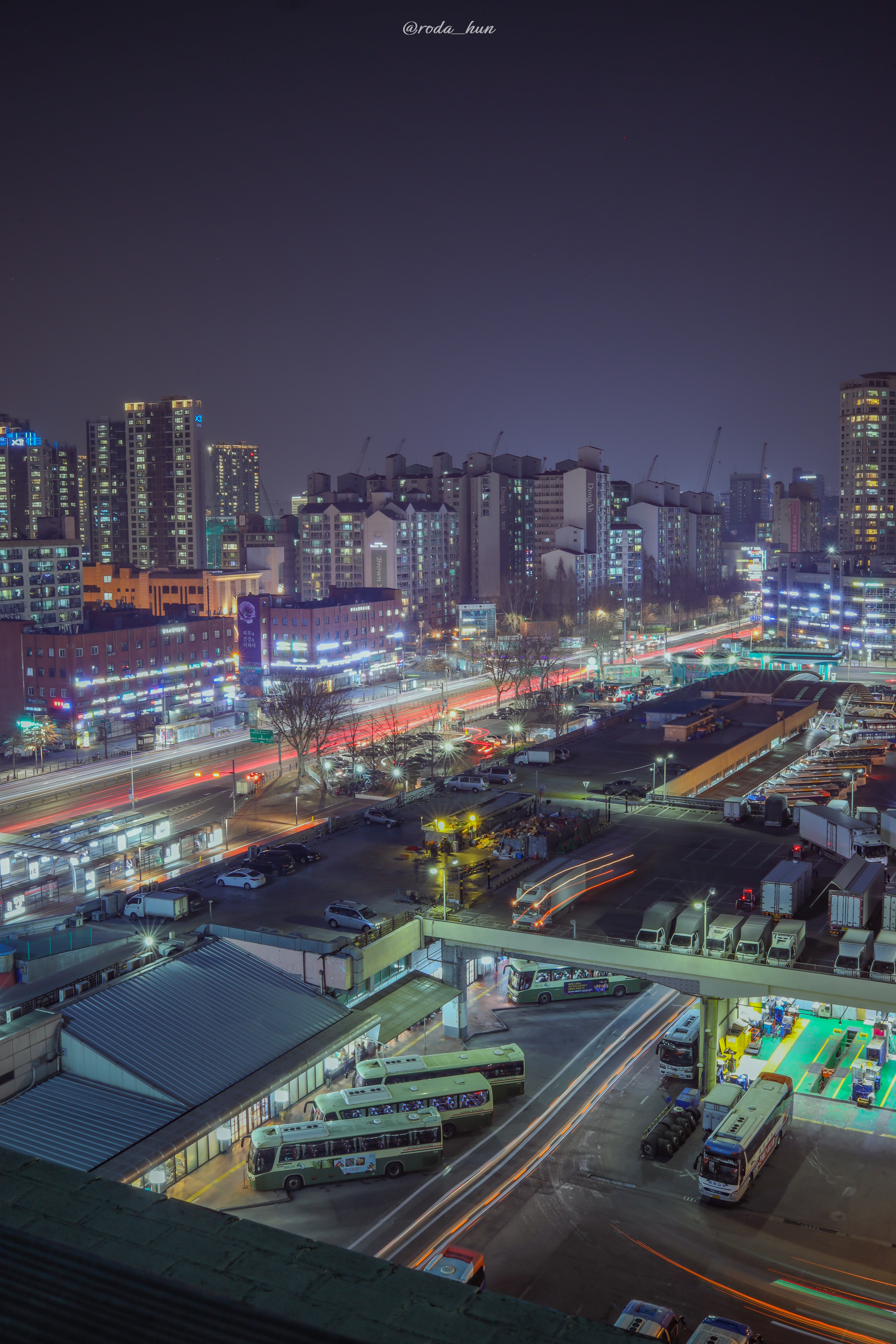 저는 서울에 거주하는동안에는 서울의 유명한 곳의 야경을 모두 담아보고싶은 그런 로망이 있었어요. 그런데 생각보다 현재 삶이 바빠서 미루어두고 있었습니다. 제 자신에게 '왜 이렇게 정신없이 살았을까?' 라는 질문을 던져보지만, 돌아온 답변으로는 '서울에 살다보니? 어쩔 수 없이 바쁘게 살아갈 수 밖에 없었던 것' 이었습니다. 현실을 살아갈때 회복되는 시간인 '쉼' 이라는게 가끔은 필요한데, 쉬고있으면 뭔가 불안하고, 생산적인 일을해야할것 같은 생각들 때문에 오히려 프레임에 갇혀버려서 아무것도 하지 못하게 되는것 같더라고요. 이 모든것은 아직도 내가 나 자신을 잘 모르기 때문이 아닐까 라는 생각을 해봅니다. 좀더 사람의 심리에 대하여서 공부할 필요성을 느낍니다.. 아무튼 이날은 터미널에서 지인을 만나기 위해서 겸사겸사 서울고속버스터미널 옥상에 출사를하러 갔습니다.
