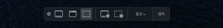 앞서 설명했던 기능들을 사용자가 선택하여 캡쳐할 수 있는모드입니다. 단 여기서 '선택한 윈도우 캡쳐기능'은 Command + Shift + 4 + Space bar 커맨드로 사용할 수 있습니다.