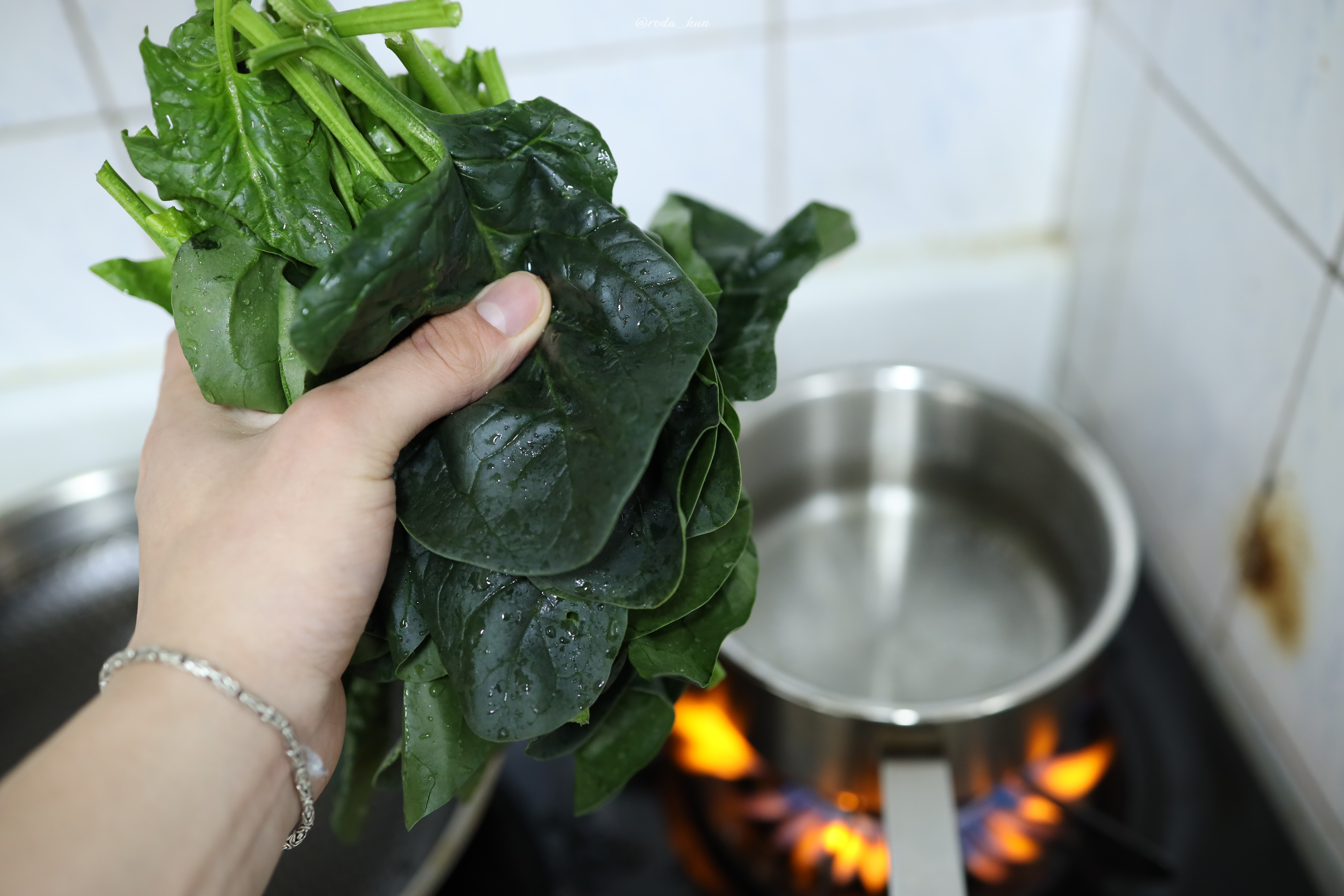 시금치는 끓는물에서 살짝 데쳐줍니다.