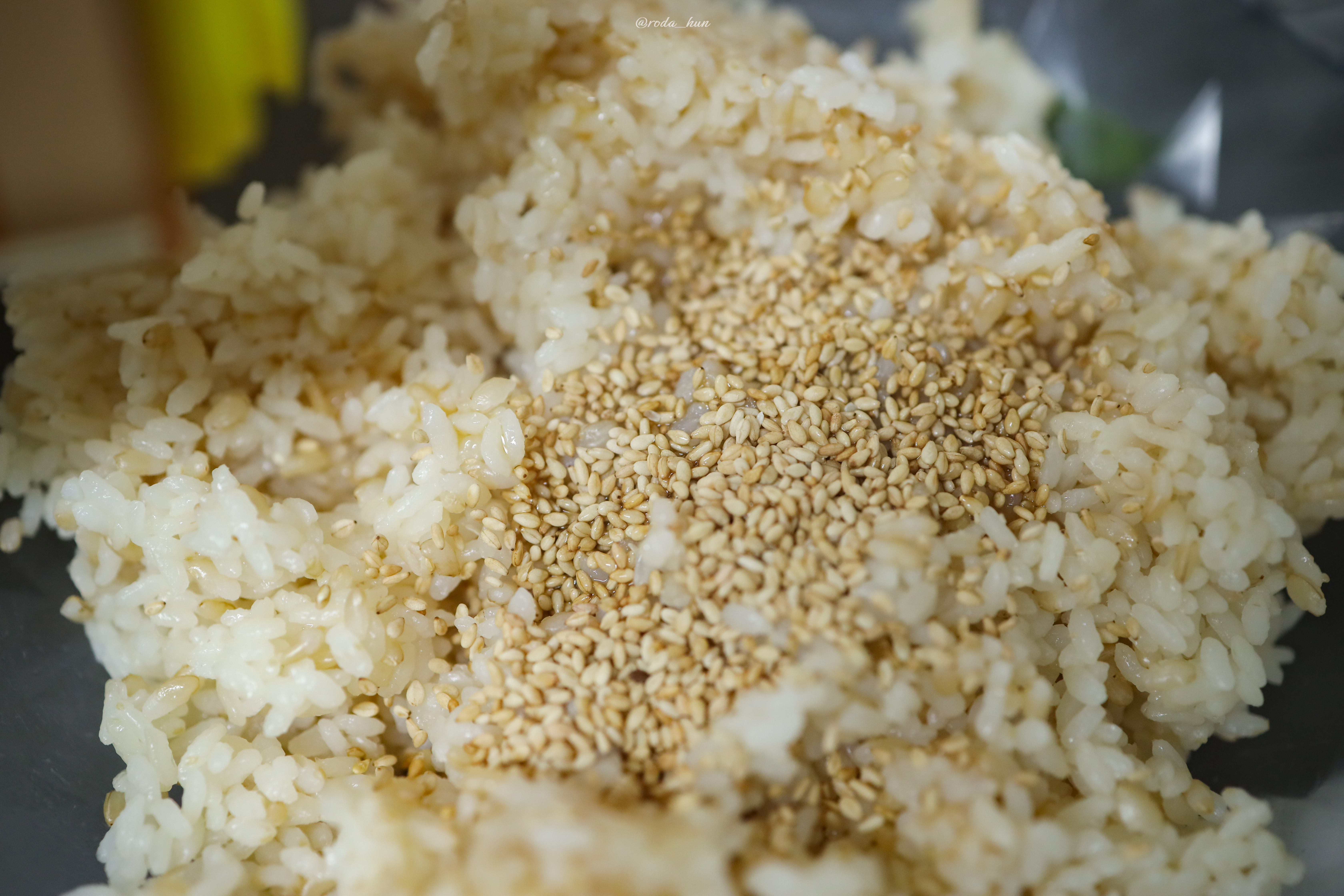 참기름과 통깨를 넣고 잘 섞어줍니다.