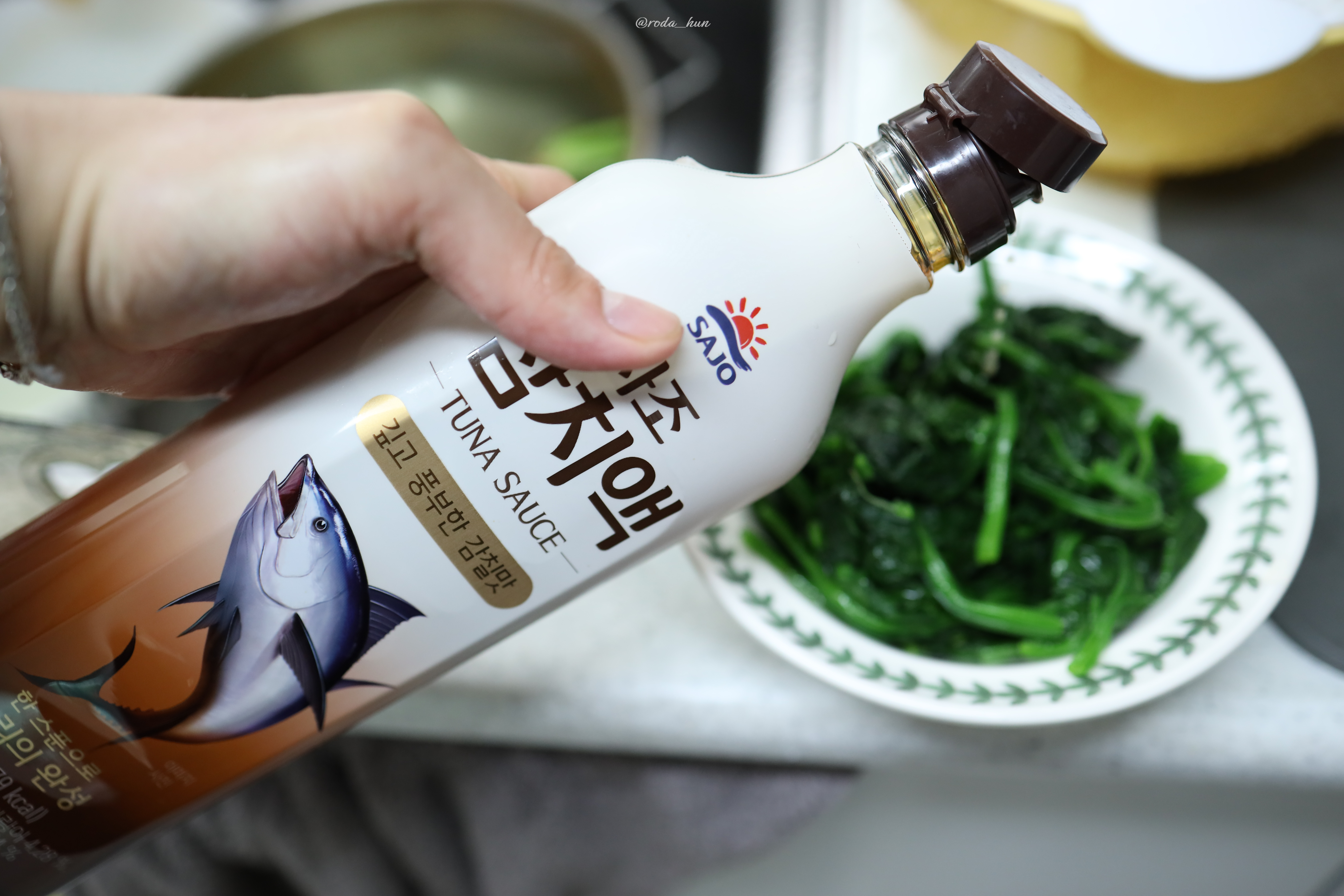 시금치는 간단하게 참치액과 참기름을 넣어서 무쳐줍니다.