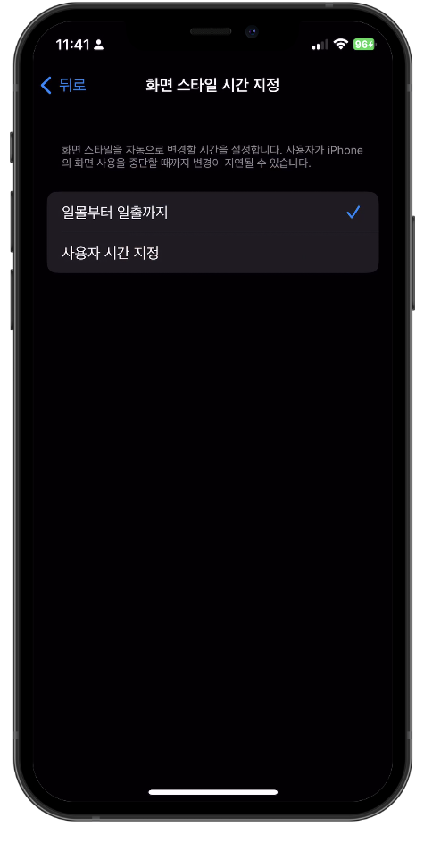 아이폰 다크모드 자동 설정하기