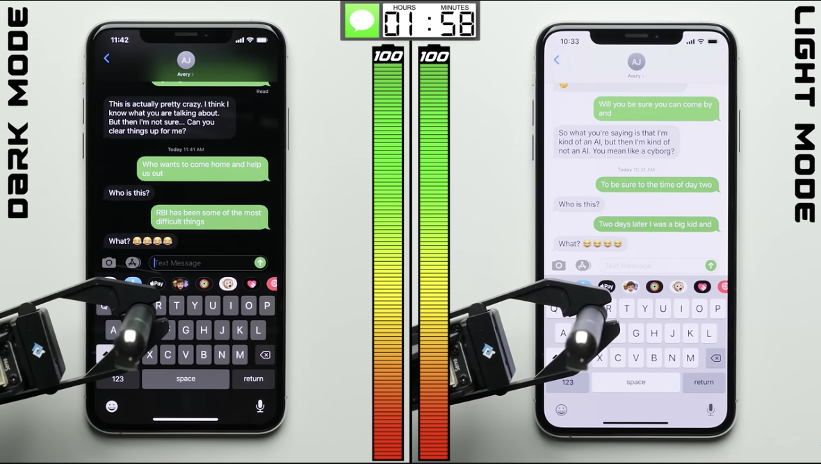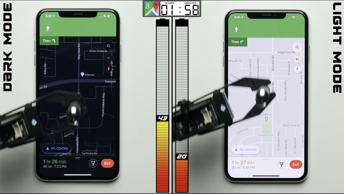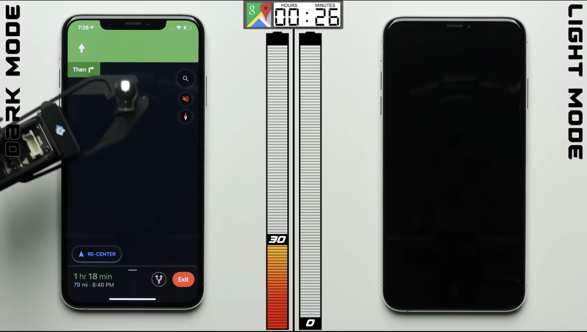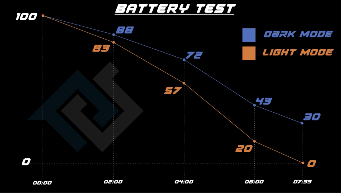 결과는 확실히 다크모드를 사용하면 배터리가 절약이 된다는 것이었습니다.