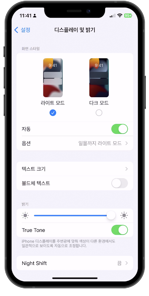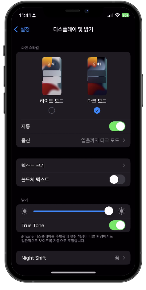아이폰 다크모드 수동 설정하기