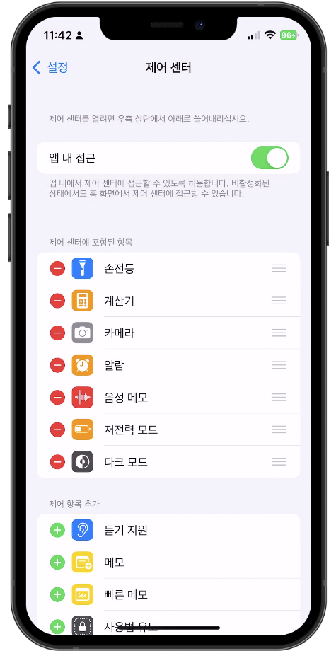 아이폰 다크모드 제어모드에 추가하기
