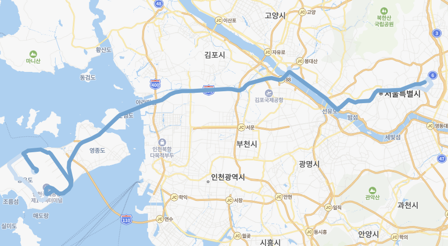 6002번 공항버스는 대표적으로 청량리역-신답역 - 동묘역 - 종로 1,2,3 - 충정로역 - 이대역 - 홍대입구역 -합정역 이런 대표적인 서울의 밀집지역을 거쳐서 인청공항으로가는 공항버스입니다. 청량리역에서 인천공항까지의 거리는 약 70km이고 시간은 약 1시간30분정도 소요됩니다.